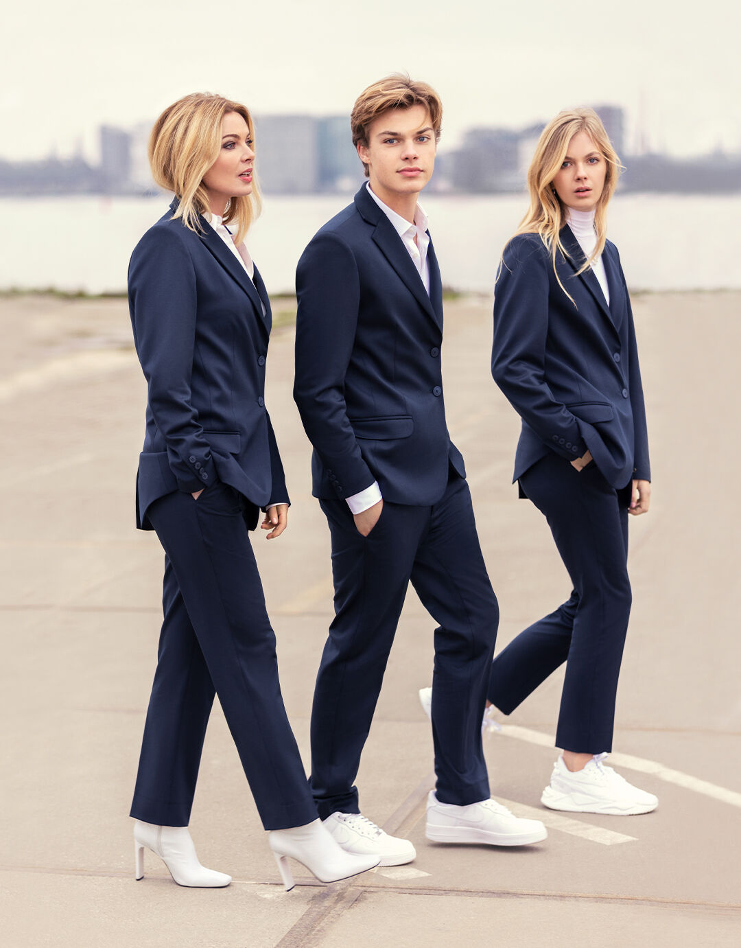 Met zowel Beau, als Lise als ik in hetzelfde 'mannenpak’. Dat ze allebei zo mooi staat, dat enorm lekker zit (Beau wil niet meer anders) en dat niet kreukt. Jasje Beau en broek Lise ;-) zijn van een andere stof dan jullie van ons gewend zijn, ook uit Italië, iets zwaarder en van een prachtige kwaliteit. De enige concessie die we moesten doen, is dat je dit pak niet zelf kan wassen. En dat heeft vooral te maken met de afwerking.
