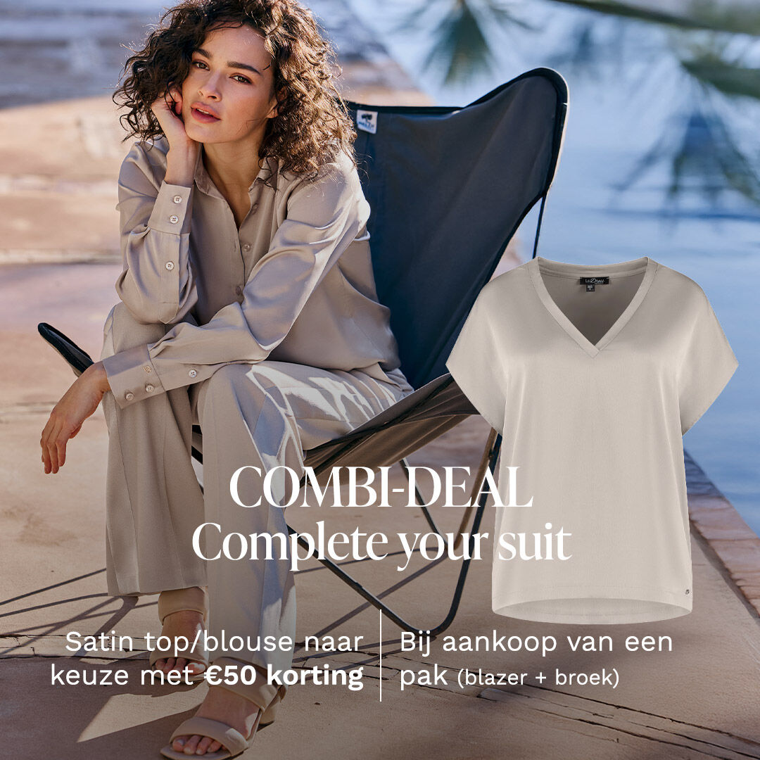 Bij LaDress geloven we in timeless classics. Daarom hebben we onze wardrobe essentials gebundeld voor een irresistible combi-deal: the perfect suit + the perfect top/blouse voor een heerlijke prijs. Shop nu je favoriete pak en maak je outfit compleet met een van onze comfortabele satijnen tops/blouses, in een kleur en maat naar keuze, met een korting van €50. The perfect deal!