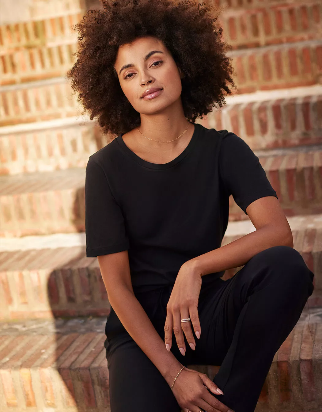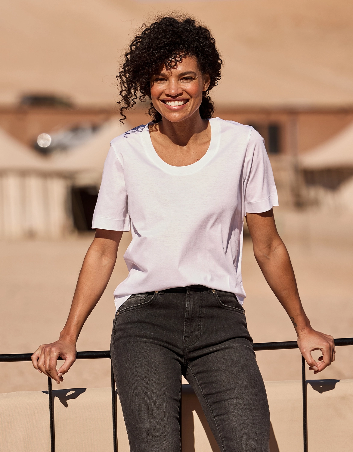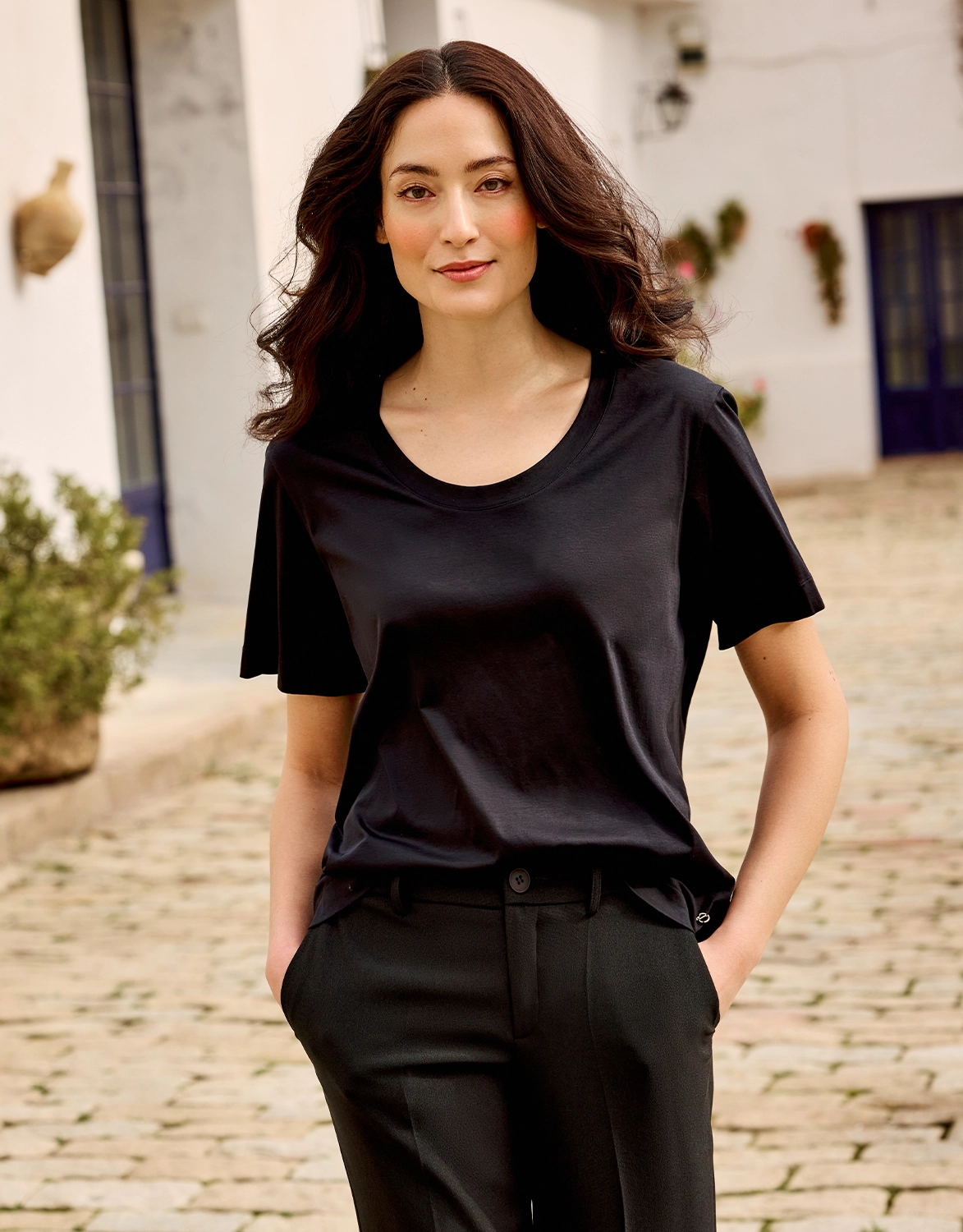 Meet Lucia, our new ultimate versatile cotton T-shirt. She is Chiara’s sister but with a round neckline. Designed for effortless elegance, she’s the perfect staple for any look.
