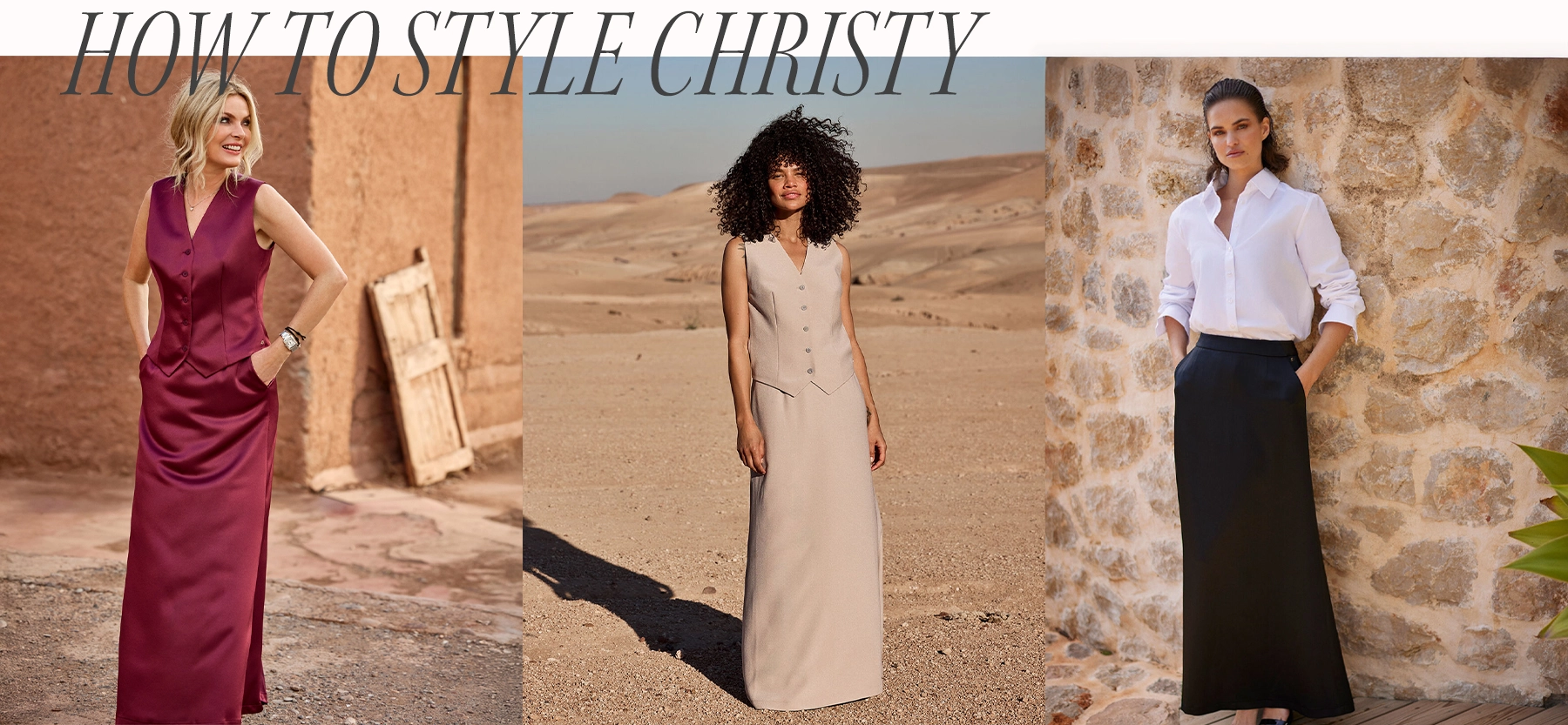 We love the sharp, yet sexy silhouette that comes with must-have skirt Christy. Create a cozy look paired with Loretta or one of our other knits.