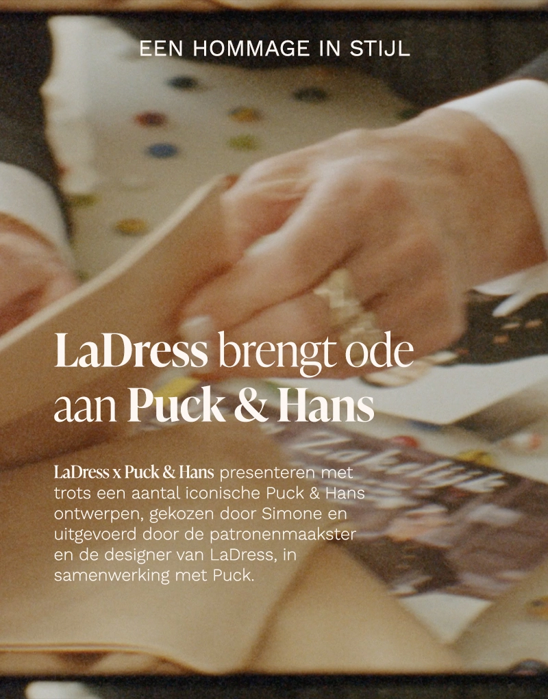 En in de hectiek van een druk leven, met kleine kinderen, sociale buzz, wonen in Amsterdam, werken in Den Bosch, gebeurde het ondenkbare: Simone had haar lievelingsjurk meegenomen in een tas en tijdens haar commute heeft ze die in de trein laten staan. En toen ze later haar eigen modemerk begon, LaDress by Simone, was die verloren Puck & Hans de grote inspiratie voor de eerste LaDress…
