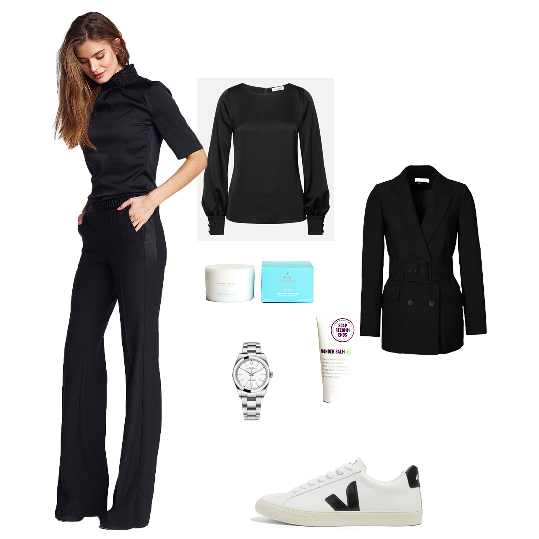Deze pantalon met rechte pijpen draag je gemakkelijk van kantoor naar een diner. Porto is gemaakt van een soepele crêpe satijnen stof, gedetailleerd met satijnen accenten zoals het paneel op de zijkant, het zakje aan de achterkant en de elastische tailleband. Maak je look compleet met de bijpassende Ava blouse.